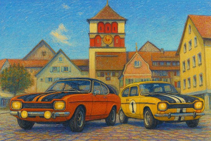 Wir haben uns für ein Motto entschieden, der einen Trend Ende der 60er- Anfang 70-er mit großer Begeisterung ausgelöst hatte. In Amerika gab es die Pony-Cars wie den Ford Mustang. Man wollte vergleichbare Fahrzeuge für Europa haben . Ford kreierte den Ford Capri. Zeitgleich kam der designähnliche Escort auf den Markt. Beide Fahrzeuge waren nicht nur beliebte Fahrzeuge auf der Straße, sondern hatten ihre Erfolge im Rennsport.